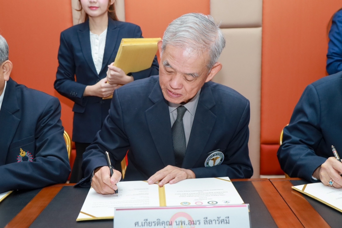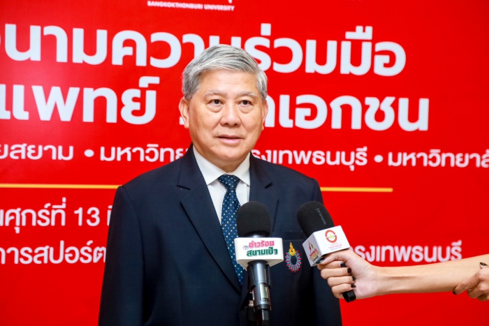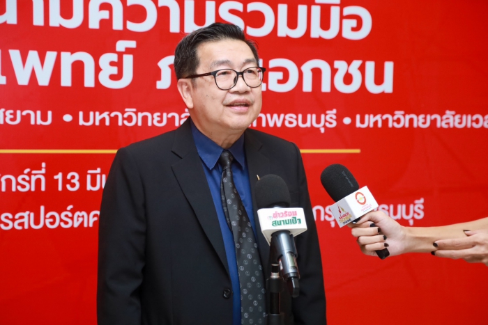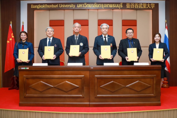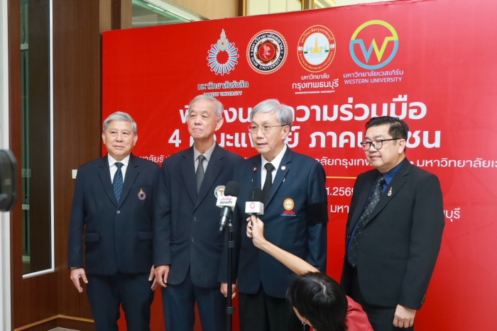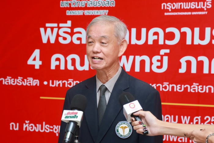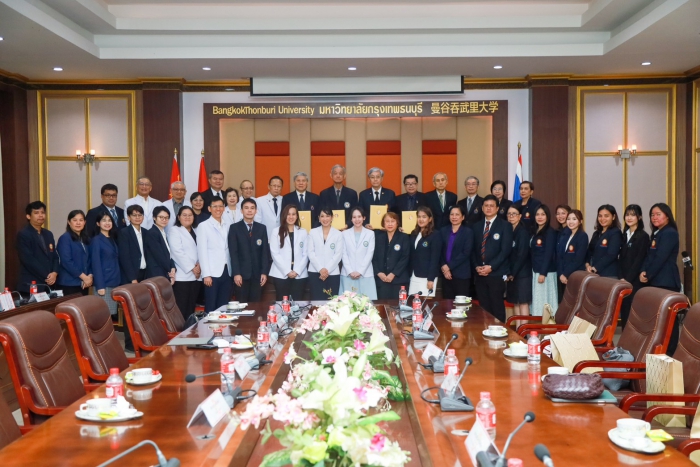 2026年3月13日,曼谷吞武里大學(BTU)校長邦翁·本賈提庫爾教授博士透過視訊致辭,熱情歡迎了來自蘭實大學、暹羅大學和西部大學等多所醫學院的代表。這項活動旨在見證曼谷吞武里大學醫學院與上述大學醫學院簽署合作意向書(LOI)。該意向書由曼谷吞武里大學醫學院院長薩拉尼特·瓦卡庫爾榮譽教授博士、蘭實大學醫學院院長傑薩達·喬克丹隆蘇克臨床教授博士、暹羅大學副校長兼醫學院代理院長阿蒙·利拉拉斯米榮譽教授博士以及西部大學醫學院院長尼永·勞帕克西里副教授博士共同簽署。