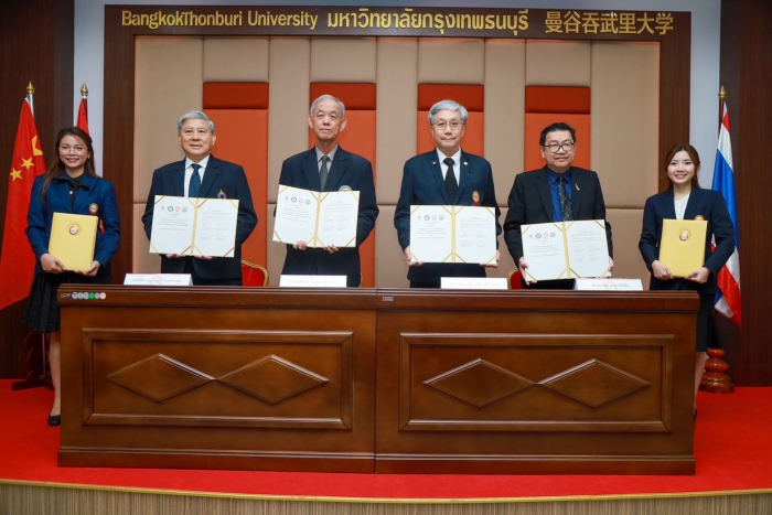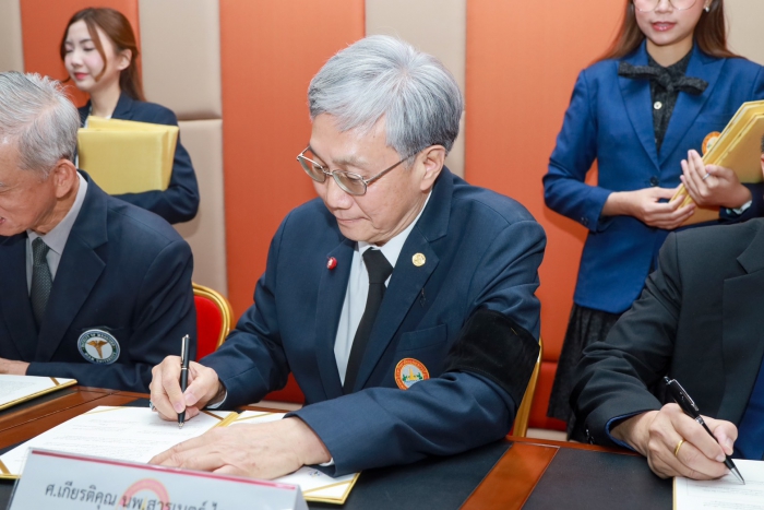 合作備忘錄的簽署儀式在曼谷吞武里大學醫學院舉行,曼谷吞武里大學醫學院的領導、上述三所院校醫學院的領導、教職員工和學生共同見證了這一時刻。儀式在曼谷吞武里大學體育中心四樓舉行。
