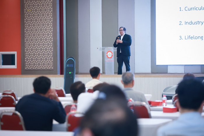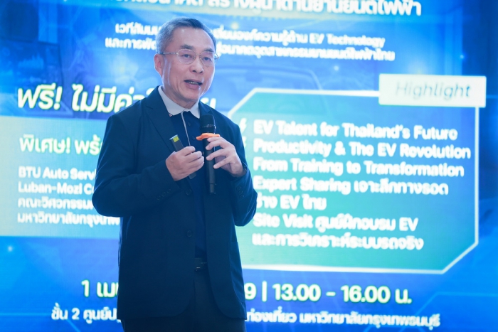工程學院院長頌瑪·通坎副教授也出席了研討會。曼谷吞武里大學透過建造綜合電動車服務與培訓中心,提出了「從培訓到轉型」的理念。該中心秉持著「實際應用、實際應用、真正的人才培育」的理念,實際地將教育、產業和服務連結起來。