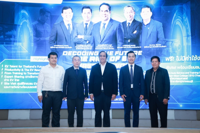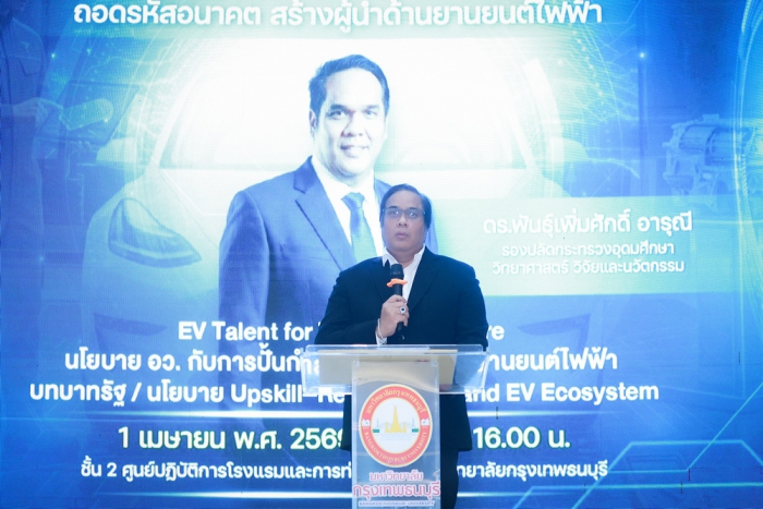 曼谷吞武里大學與國家生產力研究所合作舉辦了題為“解碼未來:電動汽車人才的崛起”的研討會,旨在為解讀電動汽車行業的未來發展趨勢以及培養支持新經濟的泰國勞動力搭建重要平台。高等教育、科學、研究與創新部(MHESI)副常務秘書潘珀姆薩克·阿魯尼博士主持了開幕式,並介紹了政府關於培養國內電動汽車人才的政策,重點在於提升和再培訓勞動力技能,從而係統性地支持電動汽車行業的增長。