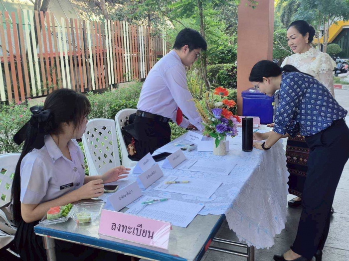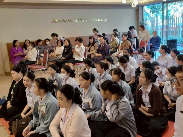 ภาพบรรยากาศนักศึกษาพยาบาล ชั้นปีที่ 2 คณะพยาบาลศาสตร์ มหาวิทยาลัยกรุงเทพธนบุรี จัดโครงการรักษ์ภูมิปัญญาไทย ประจำปีการศึกษา 2567