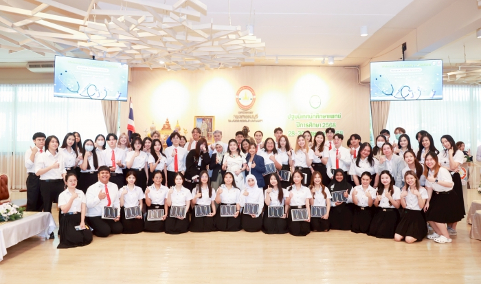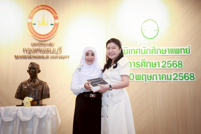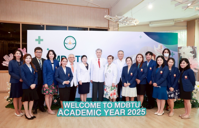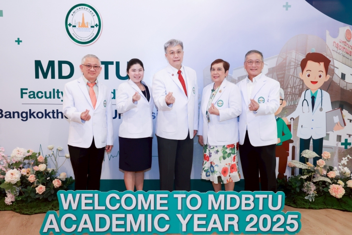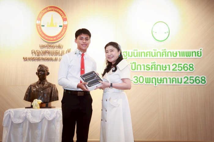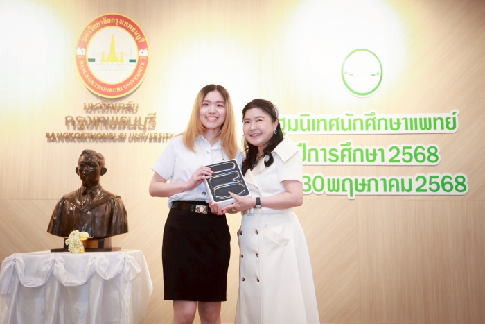 เมื่อวันที่ 28 พฤษภาคม 2568 คณะแพทยศาสตร์ มหาวิทยาลัยกรุงเทพธนบุรี จัดงานปฐมนิเทศ สำหรับนักศึกษาแพทย์ชั้นปีที่ 1 เพื่อเตรียมความพร้อมและการเสริมสร้างทัศนคติที่ดีต่อการศึกษาในสาขาวิชาชีพแพทย์ ให้แก่นักศึกษาแพทย์ใหม่ ณ อาคาร ดุษฎีบัณฑิต โดยมี ศ.ดร.บังอร เบ็ญจาธิกุล อธิการบดีมหาวิทยาลัยกรุงเทพธนบุรี ให้เกียรติเป็นประธานในพิธีปฐมนิเทศ กล่าวต้อนรับ มอบสิ่งสนับสนุนการเรียนรู้ (iPad) ให้แก่นักศึกษาใหม่