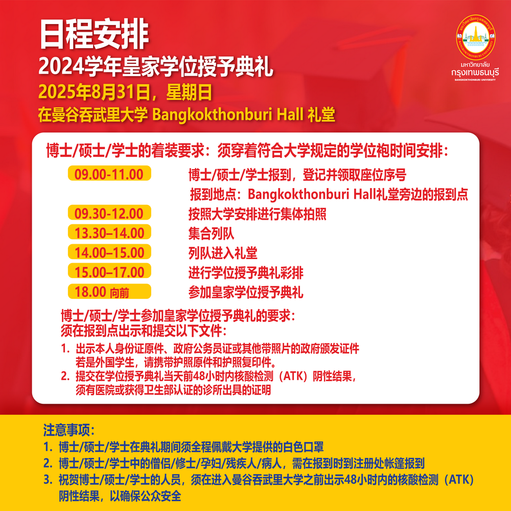 หมายกำหนดการพิธีพระราชทานปริญญาบัตรและระเบียบการแต่งกายบัณฑิต มหาบัณฑิต และดุษฎีบัณฑิต ในพิธีรับพระราชทานปริญญาบัตร