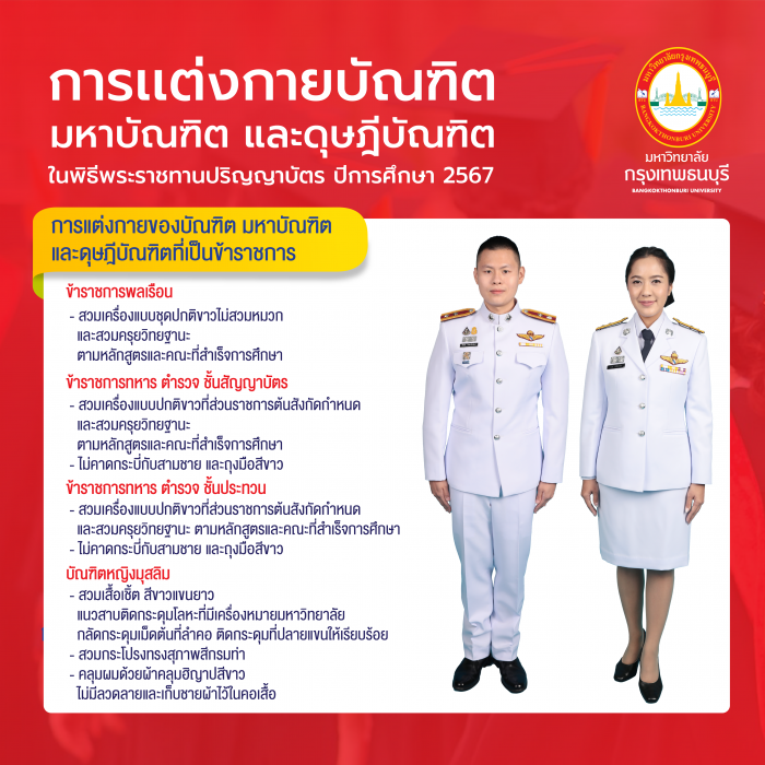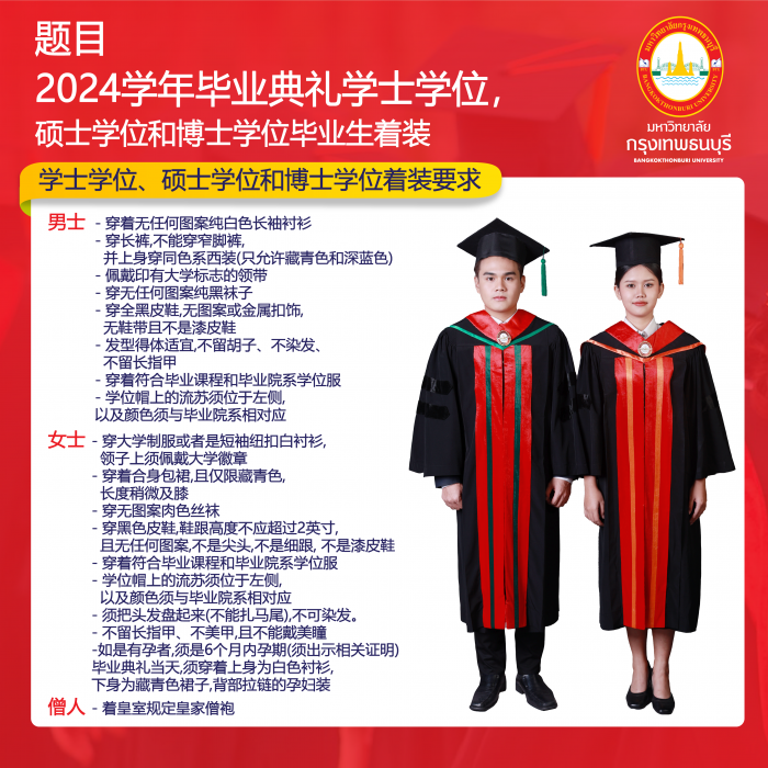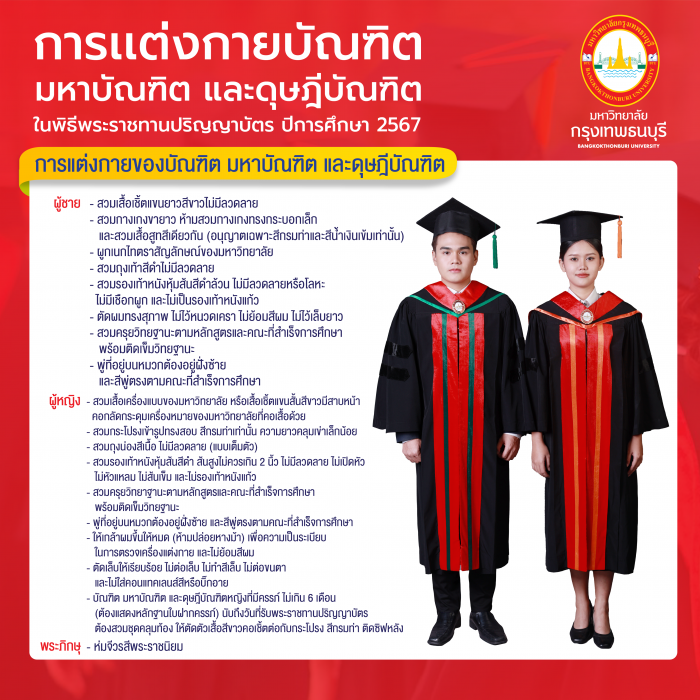 ระเบียบการแต่งกาย บัณฑิต มหาบัณฑิต ดุษฎีบัณฑิต