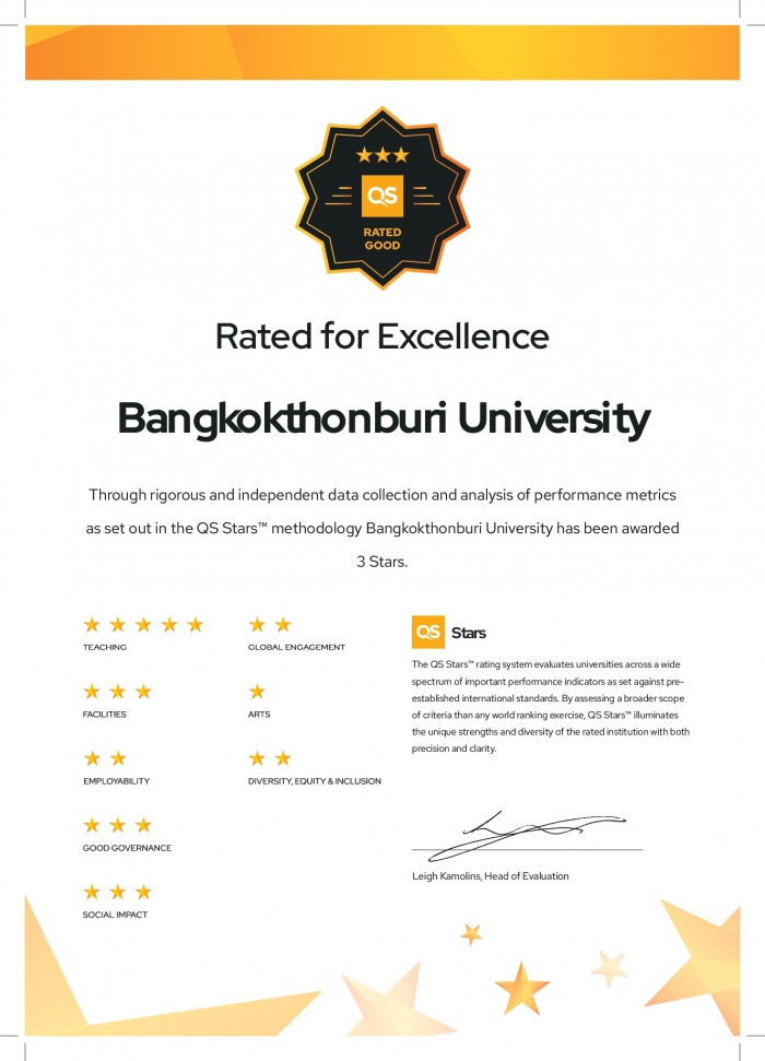 มหาวิทยาลัยกรุงเทพธนบุรี ได้รับผลการประเมิน 5 ดาว ด้าน Learning Experience Teaching