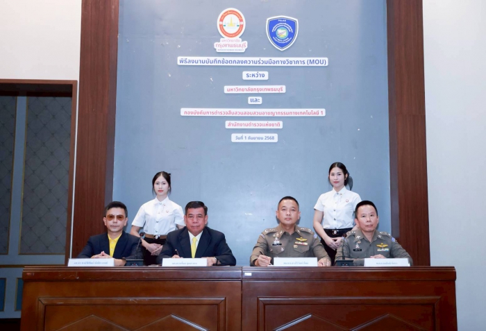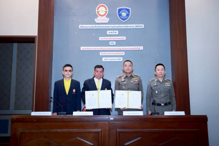 จากความสำคัญดังกล่าว  มหาวิทยาลัยกรุงเทพธนบุรี  จึงได้จัดพิธีลงนามบันทึกข้อตกลงความร่วมมือทางวิชาการกับกองบังคับการตำรวจสืบสวนสอบสวนอาชญากรรมทางเทคโนโลยี 1 (บก.สอท.1)  สำนักงานตำรวจแห่งชาติ  โดยมี ผศ.ดร.เสงี่ยม  บุษบาบาน  รองอธิการบดีฝ่ายบริหาร  มหาวิทยาลัยกรุงเทพธนบุรี  พล.ต.ต.ดร.ศิริวัฒน์  ดีพอ  ผู้บังคับการตำรวจสืบสวนสอบสวนอาชญากรรมทางเทคโนโลยี 1  และมี ผศ.ดร.พงษ์พิพัฒน์  มัลลิกะมาลย์  ผู้ช่วยคณบดี  คณะรัฐศาสตร์  พ.ต.อ.คมสันต์  กันหา  ผกก.4 บก.สอท.1  เป็นพยานในบันทึกข้อตกลงความร่วมมือทางวิชาการดังกล่าวด้วย