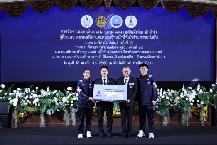 “บิว ภูริพล” เจ้าลมกรด พร้อมทัพนักกีฬา มกธ.และตัวแทนทีมชาติไทย เข้ารับเงินอัดฉีดจาก รมว.กระทรวงการท่องเที่ยวและกีฬา จากการแข่งขันมหกรรมกีฬาระดับโลก และระดับนานาชาติ
