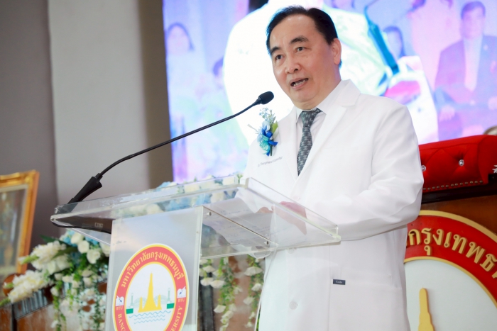 วันที่ 20 พฤศจิกายน 2568  ศ.ดร.บังอร  เบ็ญจาธิกุล  อธิการบดี มหาวิทยาลัยกรุงเทพธนบุรี (มกธ.)  เป็นประธานในพิธีมอบเสื้อกาวน์ปฏิบัติการคลินิกแก่นักศึกษาทันตแพทย์  ชั้นปีที่ 4  คณะทันตแพทยศาสตร์  มหาวิทยาลัยกรุงเทพธนบุรี  ประจำปีการศึกษา 2568  พร้อมให้โอวาทแก่นักศึกษาที่เข้ารับเสื้อกาวน์ในพิธีดังกล่าวด้วย