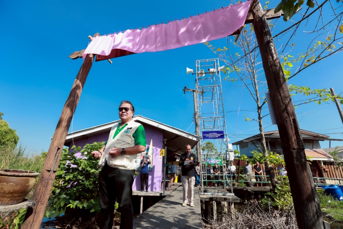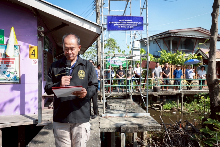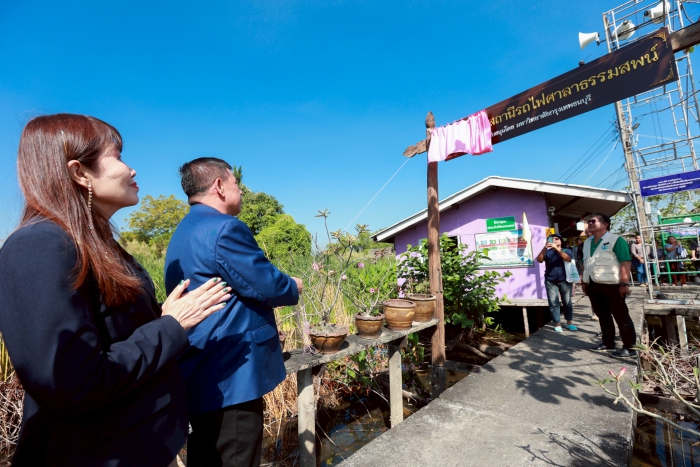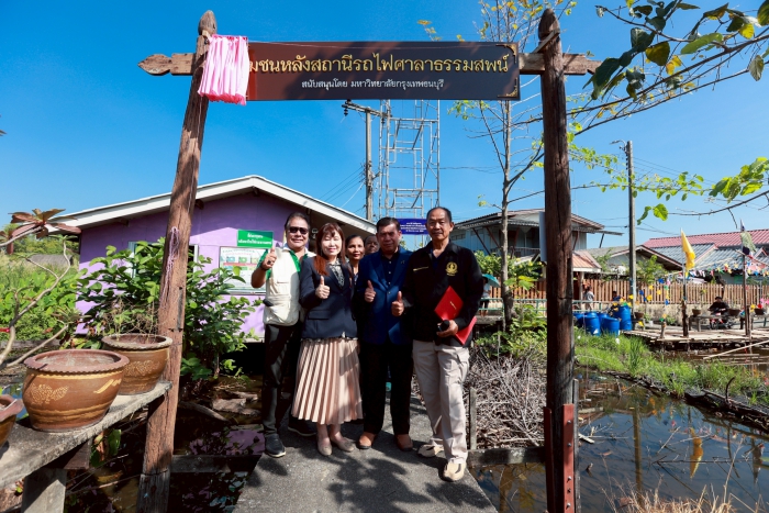 จากความสำคัญดังกล่าว คณะนิเทศศาสตร์ มหาวิทยาลัยกรุงเทพธนบุรี และชุมชนหลังสถานีรถไฟศาลาธรรมสพน์ จึงได้จัดพิธีเปิดป้ายชุมชนดังกล่าวหลังจากปรับปรุงป้ายเดิมที่ชำรุดเสียหายแล้วเสร็จ โดยมี ผศ.ดร.เสงี่ยม บุษบาบาน รองอธิการบดีฝ่ายบริหาร รศ.ดร.สุกัญญา บูรณเดชาชัย คณบดีคณะนิเทศศาสตร์ มหาวิทยาลัยกรุงเทพธนบุรี นาวาโทอเนก แจ่มชัยจิต ประธานชุมชนหลังสถานีรถไฟศาลาธรรมสพน์ พร้อมด้วยคณาจารย์คณะนิเทศศาสตร์ และประชาชนในชุมชนร่วมในพิธีดังกล่าวด้วย