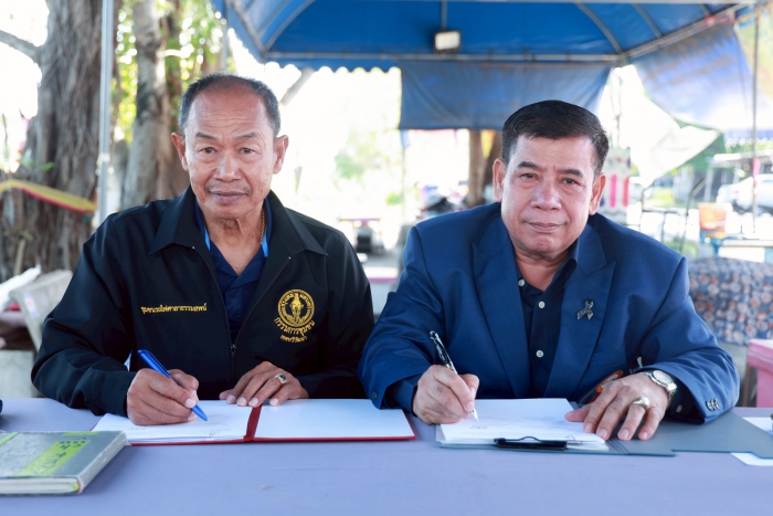 ในการนี้ มหาวิทยาลัยกรุงเทพธนบุรี และชุมชนหลังสถานีรถไฟศาลาธรรมสพน์ยังได้ลงนามในบันทึกข้อตกลง (MOU) ว่าด้วยความร่วมมือด้านการบริการวิชาการแก่สังคม (พัฒนนาชุมชน) โดย ศ.ดร.บังอร เบ็ญจาธิกุล อธิการบดี มหาวิทยาลัยกรุงเทพธนบุรี มอบหมายให้ ผศ.ดร.เสงี่ยม บุษบาบาน รองอธิการบดีฝ่ายบริหาร เป็นผู้แทนมหาวิทยาลัยกรุงเทพธนบุรี และนาวาโทอเนก แจ่มชัยจิต ประธานชุมชนหลังสถานีรถไฟศาลาธรรมสพน์ เขตทวีวัฒนา กรุงเทพมหานคร ร่วมลงนามในบันทึกข้อตกลงความร่วมมือด้านการบริการวิชาการดังกล่าว