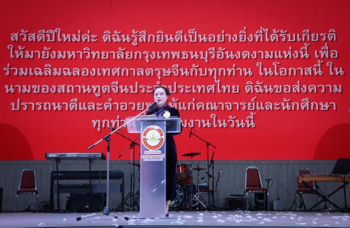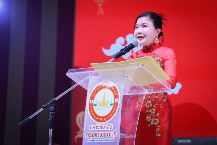 ในโอกาสนี้ ศ.ดร.บังอร เบ็ญจาธิกุล อธิการบดี ได้กล่าวต้อนรับและกล่าวอวยพรเนื่องในเทศกาลตรุษจีนแก่คณะผู้บริหาร คณาจารย์ ตลอดจนนักศึกษาชาวจีนและนักศึกษาไทยของ ม.กรุงเทพธนบุรี พร้อมเน้นย้ำถึงความสำคัญของการดูแลนักศึกษาทุกคนด้วยความรักและอบอุ่นเสมือนสมาชิกในครอบครัวเดียวกัน ภายใต้แนวคิดการอยู่ร่วมกันอย่างเกื้อกูล เคารพความหลากหลายทางวัฒนธรรม และเติบโตไปด้วยกันอย่างมีความสุขและมั่นคง