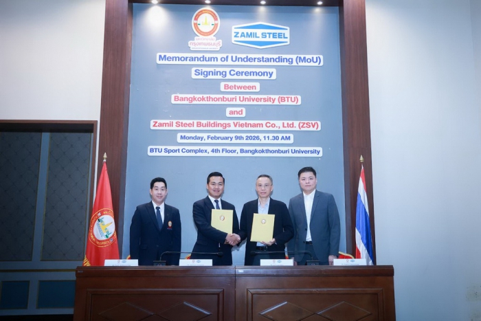 มหาวิทยาลัยกรุงเทพธนบุรี โดยคณะวิศวกรรมศาสตร์ ได้จัดพิธีลงนามบันทึกข้อตกลงความร่วมมือทางวิชาการ (Memorandum of Understanding: MOU) ร่วมกับ บริษัท ซามิล สตีล บิลดิ้ง เวียดนาม จำกัด เพื่อส่งเสริมความร่วมมือด้านวิชาการ การวิจัย และการพัฒนานวัตกรรมด้านโครงสร้างเหล็กและอาคารเหล็กสำเร็จรูป (Pre-Engineered Steel Buildings: PEB)
