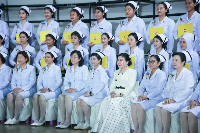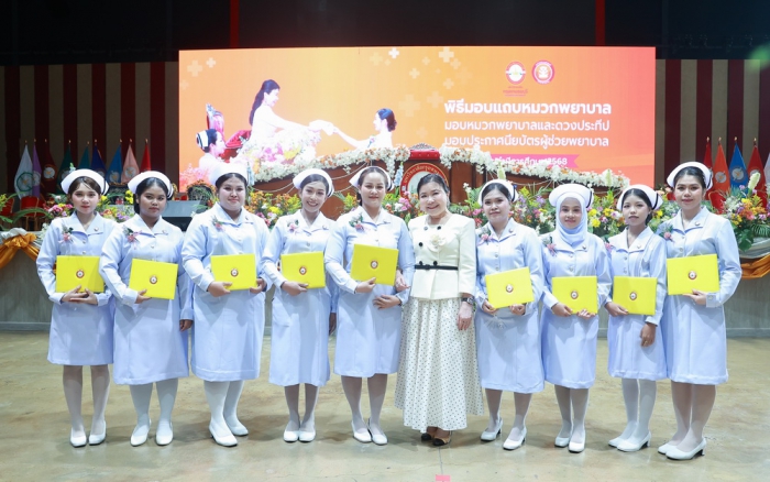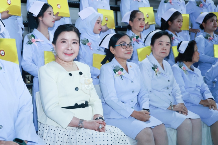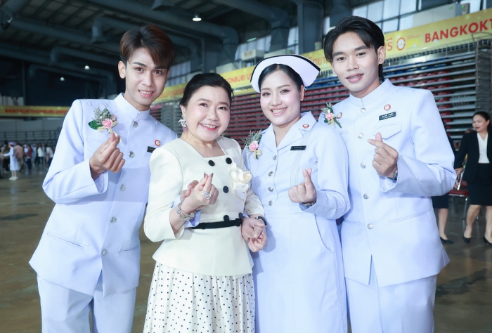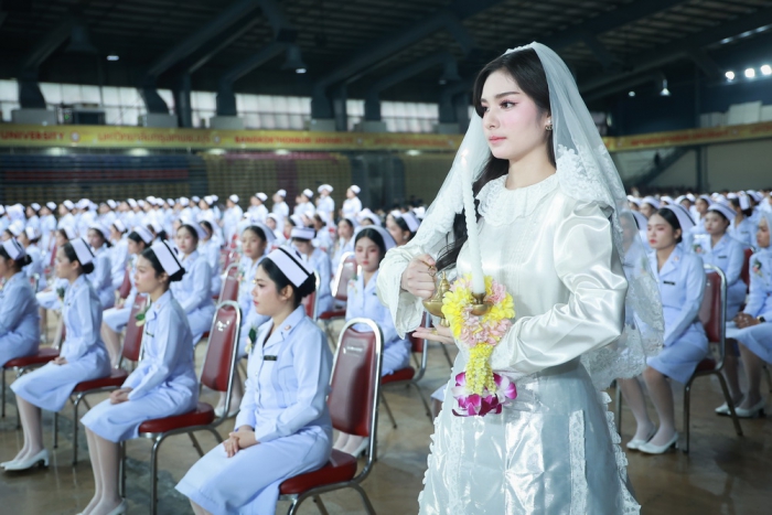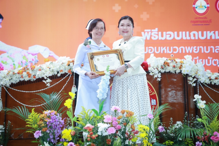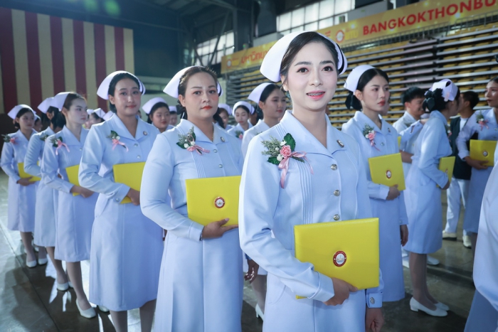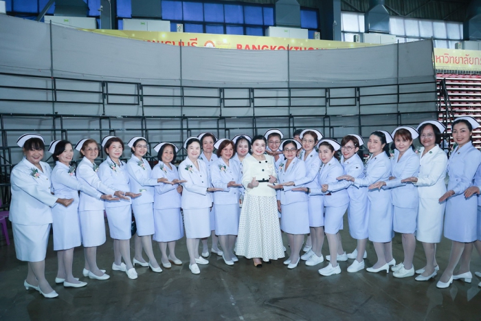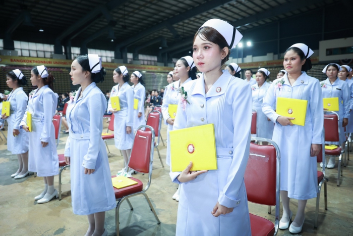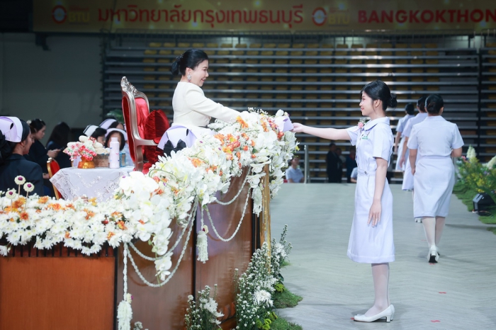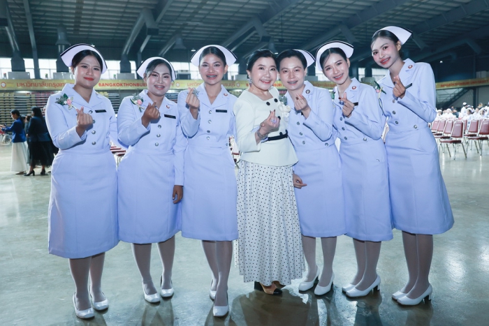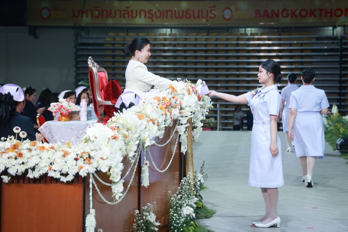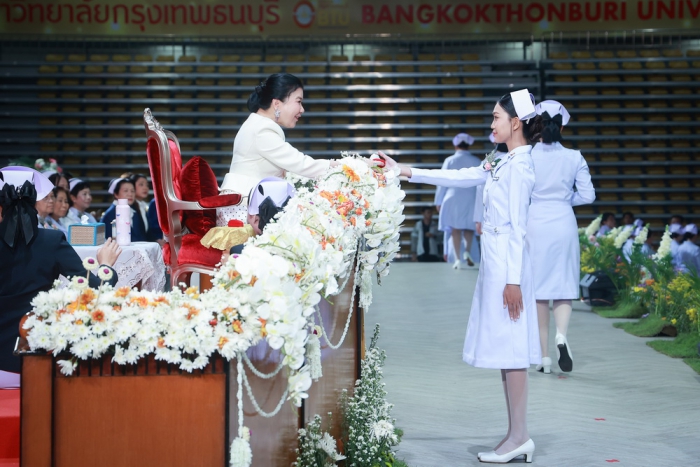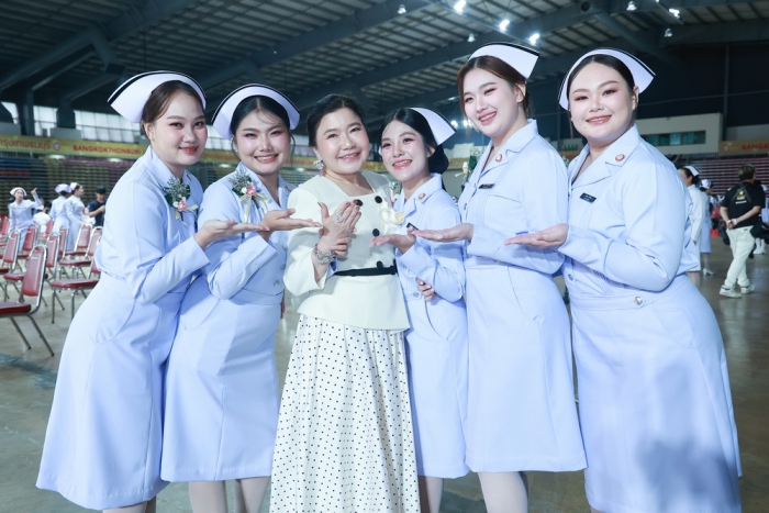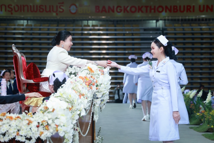 วันที่ 19 กุมภาพันธ์ 2569 ศ.ดร.บังอร เบ็ญจาธิกุล อธิการบดีมหาวิทยาลัยกรุงเทพธนบุรี (มกธ.) เป็นประธานในพิธีมอบแถบหมวก และเข็มสถาบันแก่ผู้สำเร็จการศึกษาหลักสูตรพยาบาลศาสตรบัณฑิต คณะพยาบาลศาสตร์ มหาวิทยาลัยกรุงเทพธนบุรี ปีการศึกษา 2568 และมอบประกาศนียบัตรแก่ผู้ช่วยพยาบาล รุ่นที่ 11 พร้อมกล่าวให้โอวาทแก่ผู้สำเร็จการศึกษาหลักสูตรพยาบาลศาสตรบัณฑิตดังกล่าวด้วย