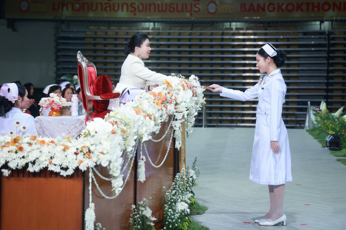 นอกจากนี้ อธิการบดีมหาวิทยาลัยกรุงเทพธนบุรี มอบหมวก ตราสัญลักษณ์ และดวงประทีปแก่นักศึกษาหลักสูตรพยาบาลศาสตรบัณฑิต ชั้นปีที่ 2 รุ่นที่ 17 คณะพยาบาลศาสตร์ มหาวิทยาลัยกรุงเทพธนบุรี เพื่อให้นักศึกษาตระหนักถึงความสำคัญ คุณธรรมจริยธรรมของวิชาชีพพยาบาล และมีความเชื่อมั่น ความภาคภูมิใจในวิชาชีพ เสริมสร้างทักษะความสัมพันธ์ระหว่างบุคคล ความรับผิดชอบ สร้างจิตสำนึก และส่งเสริมให้นักศึกษารักและเคารพในวิชาชีพพยาบาล อีกทั้ง ยังสะท้อนถึงเครื่องหมายเตือนใจว่าเป็นก้าวแรกของนักศึกษาสู่วิชาชีพพยาบาลต่อไป