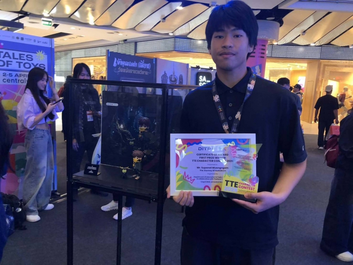 โดยผลงานที่ได้รับรางวัลในครั้งนี้คือ “การเดินทางของสุดสาคร” ซึ่งเป็นผลงานออกแบบตัวละครที่ถ่ายทอดแนวคิดผ่านการตีความวรรณกรรมและอัตลักษณ์ทางวัฒนธรรมไทยให้เชื่อมโยงกับภาษาทางทัศนศิลป์ร่วมสมัยได้อย่างสร้างสรรค์และโดดเด่น