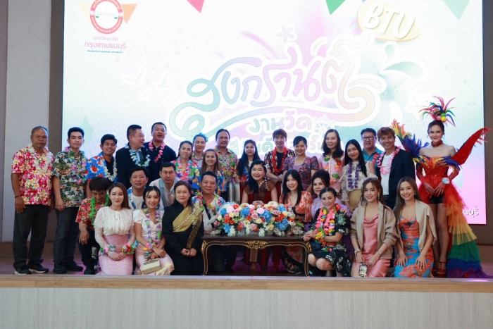 วันที่ 5 เมษายน 2569 ศาสตราจารย์ ดร.บังอร เบ็ญจาธิกุล อธิการบดี มหาวิทยาลัยกรุงเทพธนบุรี (มกธ.) เป็นประธานในงานสืบสานประเพณีสงกรานต์ “BTU สงกรานต์ งานวัด สีสันคัลเลอร์ฟูล” ประจำปี 2569 โดยมี ศาสตราจารย์ (พิเศษ) ดร.ดวงฤทธิ์ เบ็ญจาธิกุล ชัยรุ่งเรือง อาจารย์ ดร.ณัชชา ชัยรุ่งเรือง ผู้อำนวยการบริหารโรงเรียนสาธิตกรุงเทพธนบุรี พร้อมด้วยคณะผู้บริหาร คณาจารย์ บุคลากร ตัวแทนนักศึกษาไทยทั้งภาคปกติ ภาคสมทบ ระดับปริญญาตรีถึงปริญญาเอก ตลอดจนนักศึกษาต่างชาติ รวมทั้งศิษย์เก่าจากทุกคณะทุกหลักสูตรของมหาวิทยาลัยกรุงเทพธนบุรี และสถาบันการศึกษาในเครือเข้าร่วมในงานดังกล่าวอย่างพร้อมเพรียง เพื่ออนุรักษ์สืบสานวัฒนธรรมไทยตามขนบธรรมเนียมประเพณีอันดีงามให้ดำรงคุณค่าสืบไปอย่างยั่งยืน และเชิดชูมรดกภูมิปัญญาทางวัฒนธรรมที่จับต้องไม่ได้ของมนุษยชาติ
