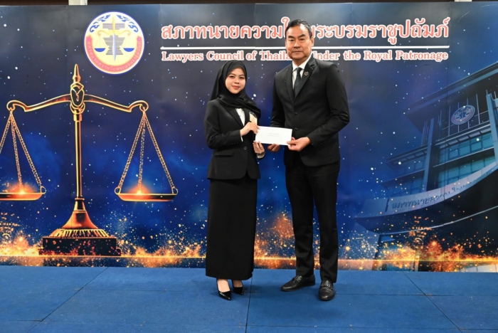นางสาวมินตรา มะนุ นักศึกษาชั้นปีที่ 1 คณะนิติศาสตร์ มหาวิทยาลัยกรุงเทพธนบุรี ได้รับรางวัลชมเชยอันดับ 1 ประเภทภาษาไทย หัวข้อ “โอกาสและอนาคตของวิชาชีพกฎหมาย”
