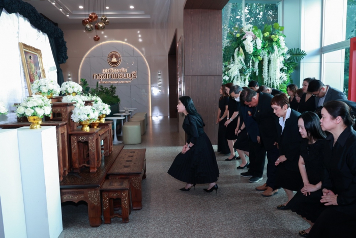 วันที่ ๒๘ ตุลาคม ๒๕๖๘ ศาสตราจารย์ดร.บังอร เบ็ญจาธิกุล อธิการบดีมหาวิทยาลัยกรุงเทพธนบุรี ได้ส่งเสริมให้ผู้บริหาร คณาจารย์ นักศึกษา มาร่วมแสดงออกถึงความจงรักภักดีและน้อมถวายความอาลัยอย่างสุดซึ้งแด่ สมเด็จพระนางเจ้าสิริกิติ์ พระบรมราชินีนาถ พระบรมราชชนนีพันปีหลวง ผู้เสด็จสวรรคตเมื่อวันที่ ๒๔ ตุลาคม ๒๕๖๘ ในการนี้ รองศาสตราจารย์ ดร.ดวงฤทธิ์ เบ็ญจาธิกุล ชัยรุ่งเรือง สมาชิกสภาผู้แทนราษฎร พร้อมด้วยคณะผู้บริหาร คณาจารย์ บุคลากร และนักศึกษา มหาวิทยาลัยกรุงเทพธนบุรี ได้ร่วมกันประกอบกิจกรรมทำ "โบว์ดำร่วมใจ…