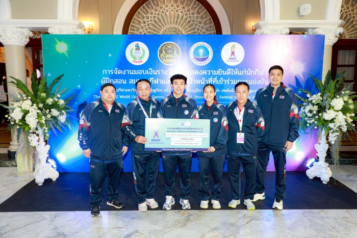 นักกีฬาของมหาวิทยาลัยกรุงเทพและตัวแทนทีมชาติไทยเข้ารับเงินรางวัลจากนายอรรถกร ศิริลัทธยากร รัฐมนตรีว่าการกระทรวงการท่องเที่ยวและกีฬาในโอกาสเป็นประธานในงานมอบเงินรางวัลและแสดงความยินดีให้แก่นักกีฬา ผู้ฝึกสอน สมาคมกีฬา และคณะเจ้าหน้าที่ที่เข้ารวมการแข่งขันมหกรรมกีฬาเวิลด์เกมส์ ครั้ง 12 ที่นครเฉิงตู สาธารณรัฐประชาชนจีน การแข่งขันมหกรรมกีฬามหาวิทยาลัยโลกฤดูร้อน ครั้งที่ 32 ที่เมืองภูมิภาคไรน์-รูห์ร สหพันธ์สาธารณรัฐเยอรมันนี …